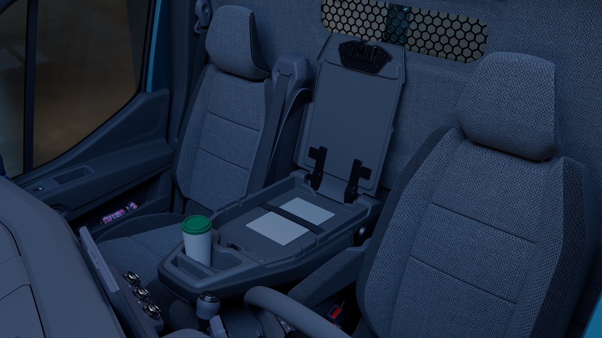 Førerorientert dashboard med spaker og knapper innen rekkevidde. Komfortable seter, mobilt kontor med brett for bærbar datamaskin* og 135 liter lagringsplass. Opplev førsteklasses komfort designet for å gjøre dine kjøreturen og daglige gjøremål enkle